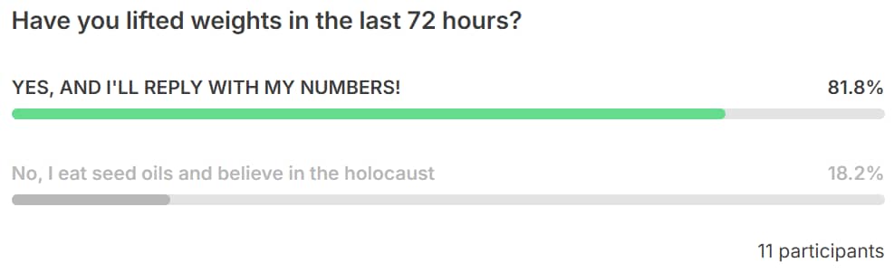 Happy Friday boys! Reminder that jews want you to stay home from church this weekend. Reply to this email with your weightlifting numbers if you want to be gigabased. Two fantastic and short videos are at the end, along with the download link as always. And yes, it's Friday, so a lot of these came from today's New Right Poast (which is subscribers-only one Friday/month). Remember the deadliest and most horrible day in American history? Turns out it literally was a Fedsurrection. So many crimes have taken place over the past few years, it's amazing how much they made of this while minimizing catastrophically destructive black race riots after Fentanyl Floyd swallowed his stash. Here are the results from last email's poll: Since my last meme email, I have lifted 14,950 lbs at my gym, and you chads lifted a beautiful 142,385 lbs plus tools and pipes. One guy even said these memails got him back into working out, which was great to read! Reminder that if you are not actively lifting weights of some kind (furniture, stuff at work, iron, whatever), then you are not getting stronger. And if you aren't getting stronger, the jews will win.