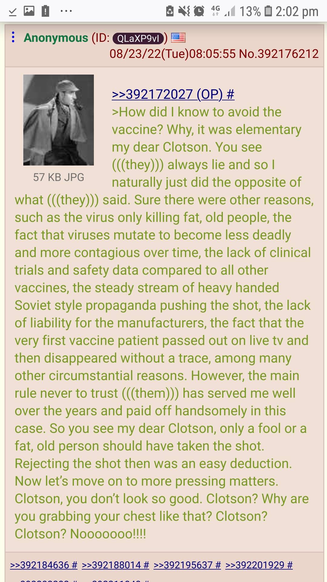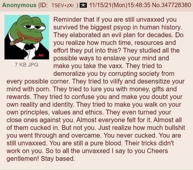 I believe that the covid vaccine was the largest propaganda push of all time. The anons on 4chan developed the perfect script for refusing the vaccine: Remember the ludicrous incentives? And the insane punishments? It was extremely distressing to see otherwise normal people fall for fear propaganda. It's easy to forget, but a hugely important component of the argument for the vaccine was the emergency use authorization (EUA). No EUA can exist when a safe, effective solution already exists. So, they had to demonize Ivermectin and other things that worked. More on that in the next holocough memes email! Remember when various world leaders died after refusing to go along with the depopulation dose? It's hard to think of companies more evil than Big Pharma, yet society at large gave them a free pass in general, and specifically, immunity from lawsuits. Remember when the definition of 'vaccine' was changed to include the clot shot? More and more people started noticing how (((jewish))) the vaccine was: Remember the non-stop parade of insane excuses to blame anything other than the hematoma soma for young, healthy people dying? Hourly reminder that Christians are commanded to personally forgive the perpetrators of these crimes, but the state should absolutely hang the perpetrators, and these two thoughts do not contradict. Stone Choir has an episode about Justice and Retribution: https://stone-choir.com/justice-and-retribution/ I think the point of this was depopulation, and a trial run to see if we'd accept things like vaccine passports. This brought more visibility to the subject of vaccines in general. More and more anons noticed the insane increase in vaccines over time, especially those given to babies. Amazingly, the poison pushers kept increasing the number of doses, and way too many normies just went along with it. We witnessed the advent of 'you have to get it so mine works' arguments: It's easy for us schizos to look down on those that took the vaccine, but I think that misses the most important point: propaganda works. The largest propaganda push of all time worked all too well. My conclusion was that I needed to fight fire with fire, and to counter their fake and gay propaganda with propaganda of my own. I think tens if not hundreds of thousands of people have learned about the jewish question from my central banking narration, and I have high hopes for my upcoming Ted Kaczynski manifesto presentation (two more weeks), but this email list/Telegram channel is more important to me than those things. I intend on being the best propagandist I can be, and that takes regular practice, and I appreciate your participation!