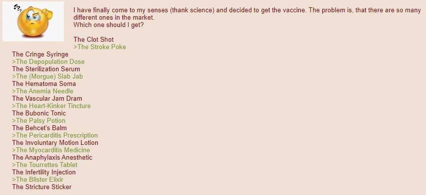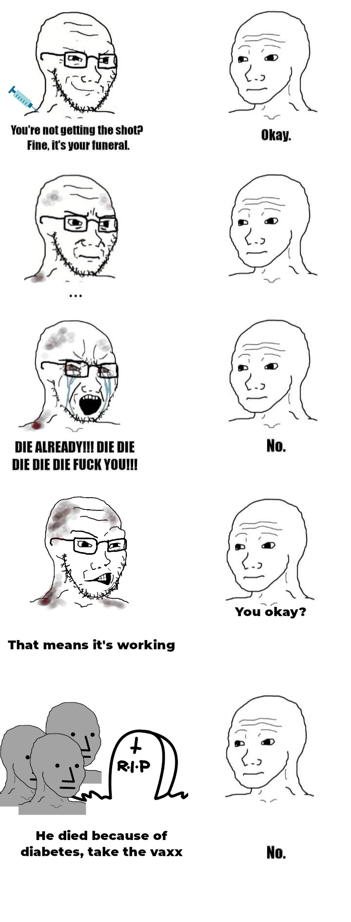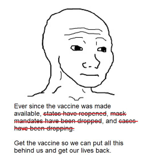 Hello gigachads! This is not a regular meme email (that'll be Saturday), but the fifth email in a series I started in March about the crimes against humanity known as covid. Today we're focusing on the stroke poke. Even though I didn't include all my vaccine stuff, this is my new longest email (!), and your email browser will probably 'clip' it before it's even halfway done. Click 'view entire message' at the bottom of the email if needed. As a reminder, all the memes from all these holocough emails can be downloaded here at full quality (instead of trying to read these compressed versions): https://drive.google.com/drive/folders/1UtRo_1syVgcaMzjNu5dQMdKzg1J-a_kU I'm trying something new this time, please take the extra few seconds to vote now AND at the end of this email:
