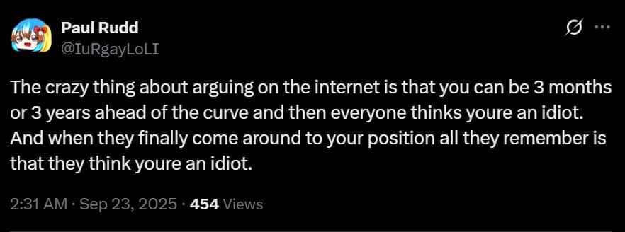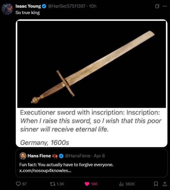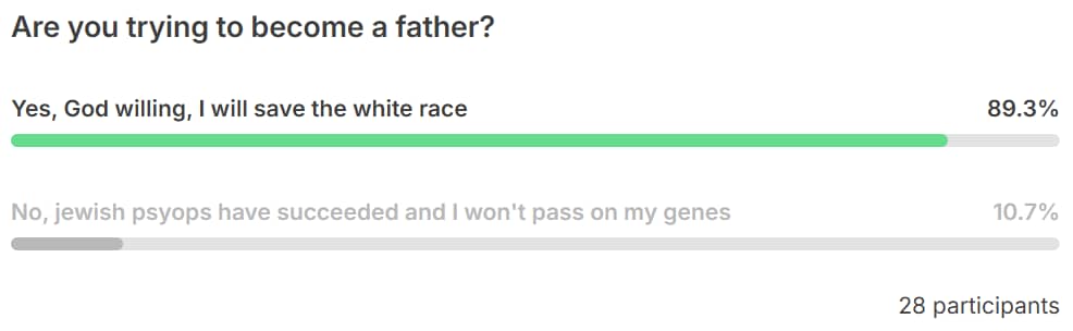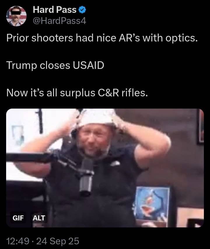 Howdy boys! Since my last meme email, I have lifted 42,125 lbs at my gym. None of you emailed me any weight lifted, so the globalists won this round. Sad! Get a load of this certified gem our Vice President poasted on Twitter today: Here are the RECORD HIGH results from last email's poll: The political temperature increases again as some lib tried shooting at ICE agents who were rounding up illegals in Dallas a few hours ago. Instead, he killed one of the illegals and injured two more of them, and then shot himself. In other news, RFK Jr. advised people against using Tylenol, with predictable results! Anon, I hope you remember to never relax around blacks. The Charlie Kirk "assassin" CCTV footage is like the classic Steamed Hams clip from The Simpsons. "You have the shooter, on camera, taking the shot?" "Yes!" "May I see it?" "No." Much has been made of Charlie Kirk's widow publicly forgiving his killer. Yes, I bet the tranny lover guy was very likely the fall guy, but that's not why I bring it up. Here's the point: forgiveness of the sin has nothing to do with stopping earthly punishment. This is the attitude Christians should have: I didn't realize there's a 'fell for it again' Twitter account churning out these gems, I enjoyed this: